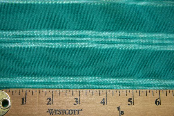 This is a poly/cotton sweater knit that alternates between opaque stripes & a stripe made up of smaller stripes (see “Additional Information” for exact stripe widths), which runs across the width of the fabric. Perfect for making tops, dresses, skirts, cardigans, shrugs, cover-ups, vests, costumes, etc. It is pretty sheer, so depending on the project lining is recommended. Disclaimer: Please see our FAQ Page to learn more about our policies & other disclaimers, important to know when purchasing fabrics from us. If you need content verification please consider ordering swatches & testing them yourself before committing to purchasing yardage.