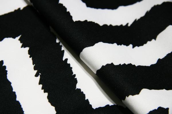 This is a medium weight interlocking knit that features a large grungy chevron print, which runs across the width of the fabric. Perfect for making t-shirts, tunics, dresses, skirts, children’s apparel, home dec. projects, scarves, sweaters, outerwear, sleepwear, costumes, crafts, headbands & head wraps, etc. Disclaimer: Please see our FAQ Page to learn more about our policies & other disclaimers, important to know when purchasing fabrics from us. If you need content verification please consider ordering swatches & testing them yourself before committing to purchasing yardage.