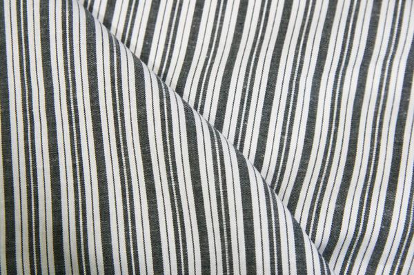 This is a cotton stretch poplin that features White & Black chambray stripes accented by metallic silver threads, which run parallel to the selvage. Perfect for blouses, dresses, lightweight skirts, unconstructed jackets, lightweight curtains, shirts, costumes, lining, craft projects, throw pillows, children’s apparel, etc. Disclaimer: Please see our FAQ Page to learn more about our policies & other disclaimers, important to know when purchasing fabrics from us. If you require verification of content, please consider ordering swatches & testing them yourself, before making a purchase (see the FAQ Page for our Swatch Policy.)