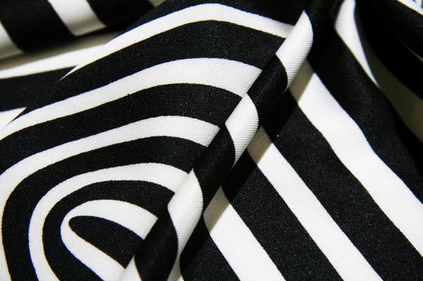 This is a medium weight interlocking knit. It has a very large bold geometric print that is bordered at both selvages. Perfect for making t-shirts, tunics, dresses, skirts, children’s apparel, home dec. projects, sweaters, scarves, outerwear, sleepwear, costumes, crafts, headbands & head wraps, etc. Disclaimer: Please see our FAQ Page to learn more about our policies & other disclaimers, important to know when purchasing fabrics from us. If you need content verification please consider ordering swatches & testing them yourself before committing to purchasing yardage.